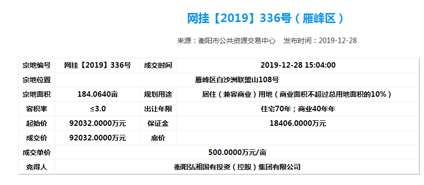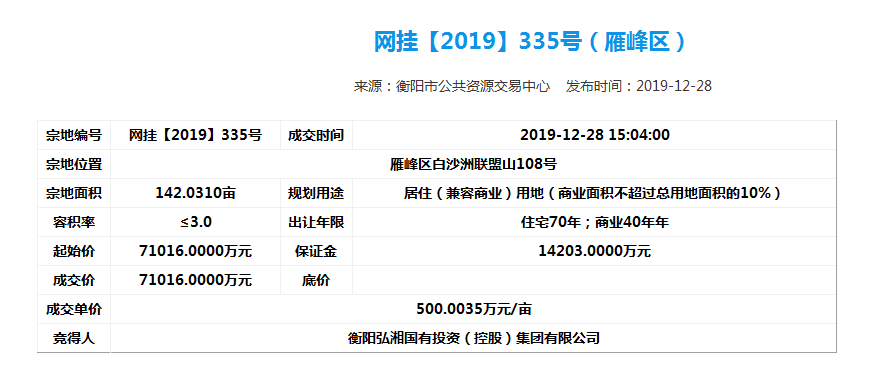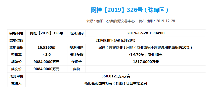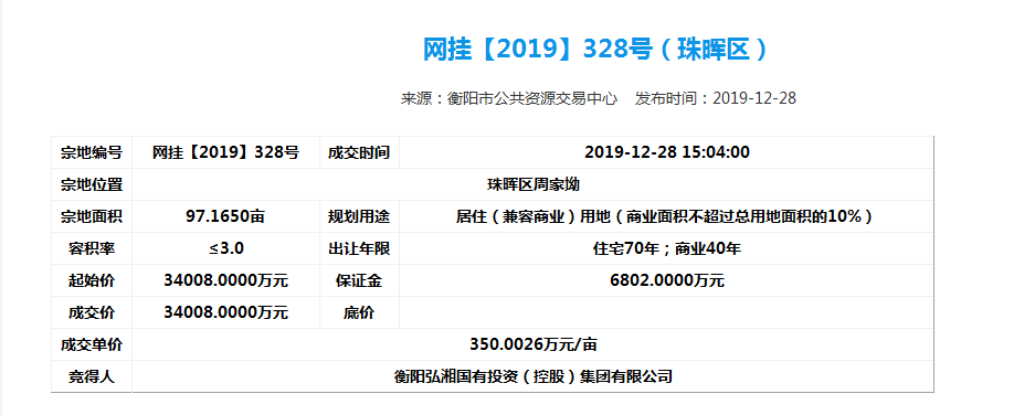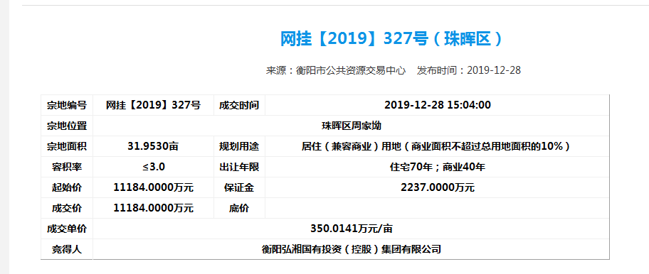 為了進一步做好市場化運行,弘湘國投以市場經(jīng)營為主體,向資本市場進軍,進一步做實做強國有資產(chǎn),增強自身活力。2019年12月28日下午,弘湘國投在市公共資源交易中心網(wǎng)站成功摘牌6宗共計523畝改制企業(yè)土地,摘牌總價超24億元,并于當日簽訂了《國有建設用地使用權公開出讓成交確認書》。2019年12月31日,弘湘國投與市自然資源和規(guī)劃局正式簽訂了《國有建設用地使用權出讓合同》。