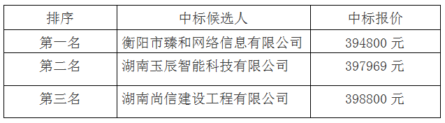 根據(jù)招標(biāo)投標(biāo)相關(guān)法律法規(guī)及招標(biāo)文件的規(guī)定,衡拖棚戶區(qū)改造一期三網(wǎng)合一入戶工程于2020年9月28日在弘湘寫字樓4樓會議室舉行開標(biāo)、評標(biāo)會,本項(xiàng)目采用“低價(jià)中標(biāo)法”,現(xiàn)將中標(biāo)候選人名單公示如下: