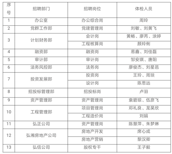 衡陽弘湘國有投資(控股)集團有限公司2020年公開招聘員工體檢事項公告