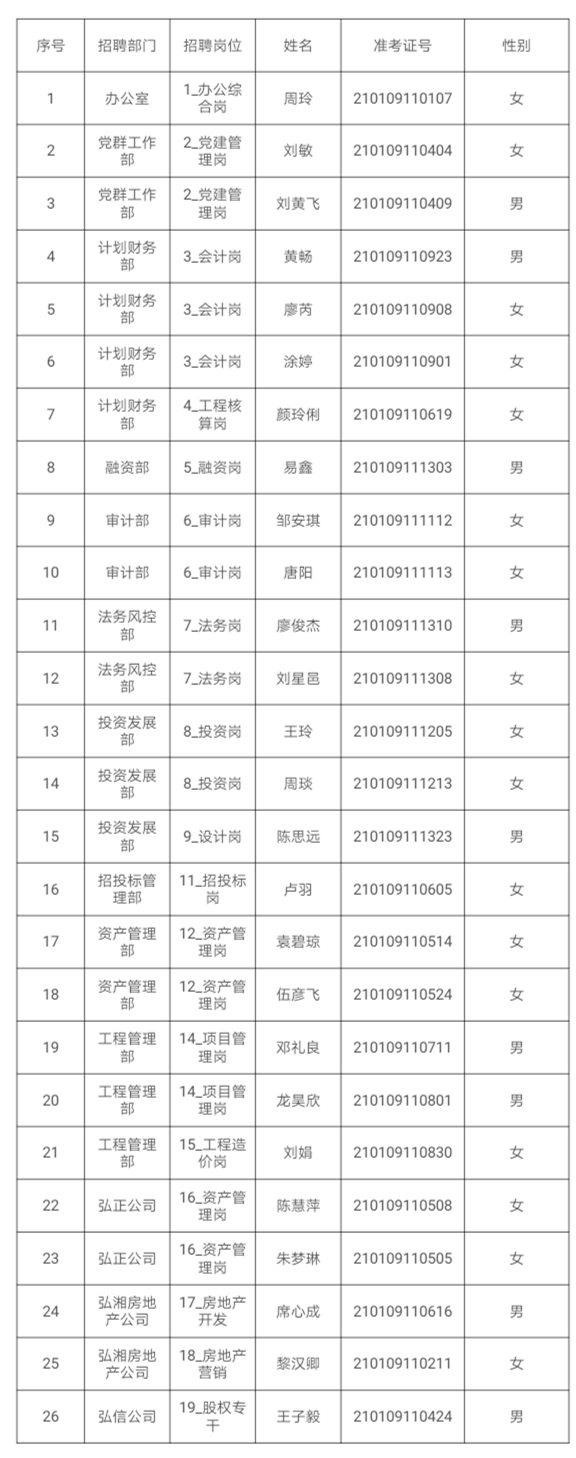 根據(jù)《衡陽(yáng)弘湘國(guó)有投資(控股)集團(tuán)有限公司2020年公開(kāi)招聘員工公告》的規(guī)定,我司公開(kāi)招聘員工按發(fā)布公告、報(bào)名、筆試、資格審查、面試、體檢、考察等程序,現(xiàn)確定26名擬聘用人員,并予以公示。