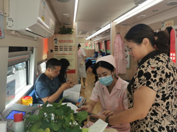 早上7點(diǎn)30分,獻(xiàn)血車(chē)緩緩駛?cè)牒胂鎳?guó)投辦公區(qū),無(wú)償獻(xiàn)血拉開(kāi)了序幕,員工們陸續(xù)到獻(xiàn)血車(chē)登記排隊(duì),有條不紊地登記信息、血液化驗(yàn)檢測(cè)、采血。在這些獻(xiàn)血員工當(dāng)中,他們有的是數(shù)次參加無(wú)償獻(xiàn)血的老同志,也有剛參加工作不久的新員工,其中不乏巾幗不讓須眉的女同志。
