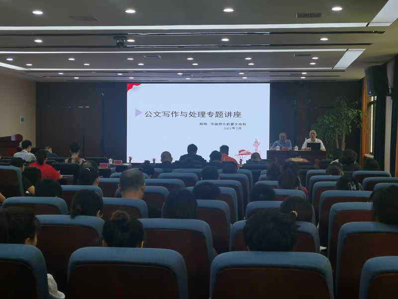 此次培訓(xùn)特邀市政府辦機要文電科科長陽明進行專題授課。他以工作需求為導(dǎo)向,用通俗易懂的語言圍繞公文釋義、公文種類、公文格式、行文規(guī)則、公文擬制、公文辦理等六個方面進行了系統(tǒng)、詳細地講解。