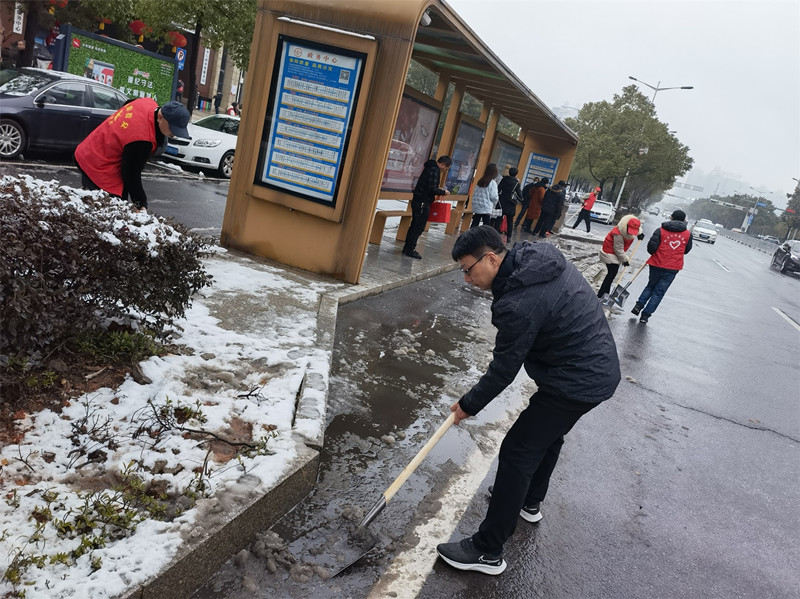 支部一聲號(hào)召,大家積極參加,穿上衡陽群眾紅馬褂,人手一把鐵鏟,紛紛來到集團(tuán)公司大門前的蒸湘區(qū)西外環(huán)道路上。道路上堆滿了厚厚的積雪,給行人、車輛通行帶來不便。大伙兵分兩路開始行動(dòng),雖然寒風(fēng)刺骨,但大家服務(wù)熱情很高,時(shí)刻不忘中國(guó)共產(chǎn)黨員的初心就是為人民服務(wù)。