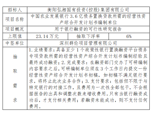 招 標 人:衡陽弘湘國有投資(控股)集團有限公司