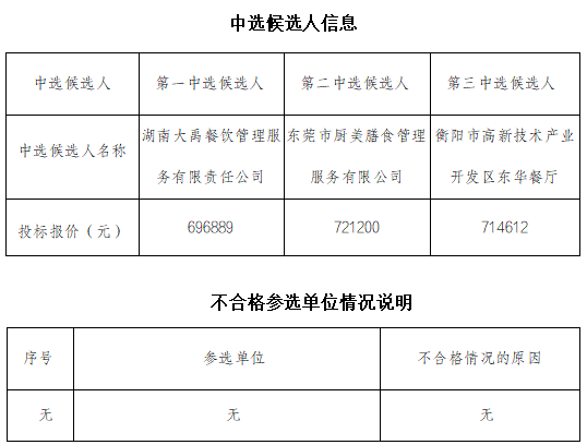 衡陽國投集團(tuán)員工食堂勞務(wù)承包服務(wù)單位公開比選中選候選人公示