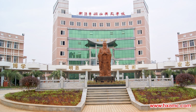 學(xué)校位于風(fēng)光秀麗的衡陽市區(qū)蒸水河畔,與聞名遐爾的四大古代書院——石鼓書院毗鄰。園林式的校園占地200多畝,建筑面積8萬平方米。獨立的中、小學(xué)教學(xué)樓、配備空調(diào)的學(xué)生公寓以及中、小學(xué)生運動場和學(xué)校圖書館、實驗樓、體育館、形體房、游泳池、風(fēng)雨走廊渾然一體。微機房、語音室和校園網(wǎng)設(shè)施齊全。校園里4.3萬平方米的綠化面積,綠草如茵,繁花似錦,校園環(huán)境秀麗,景色宜人,為衡陽市園林式民辦學(xué)校。